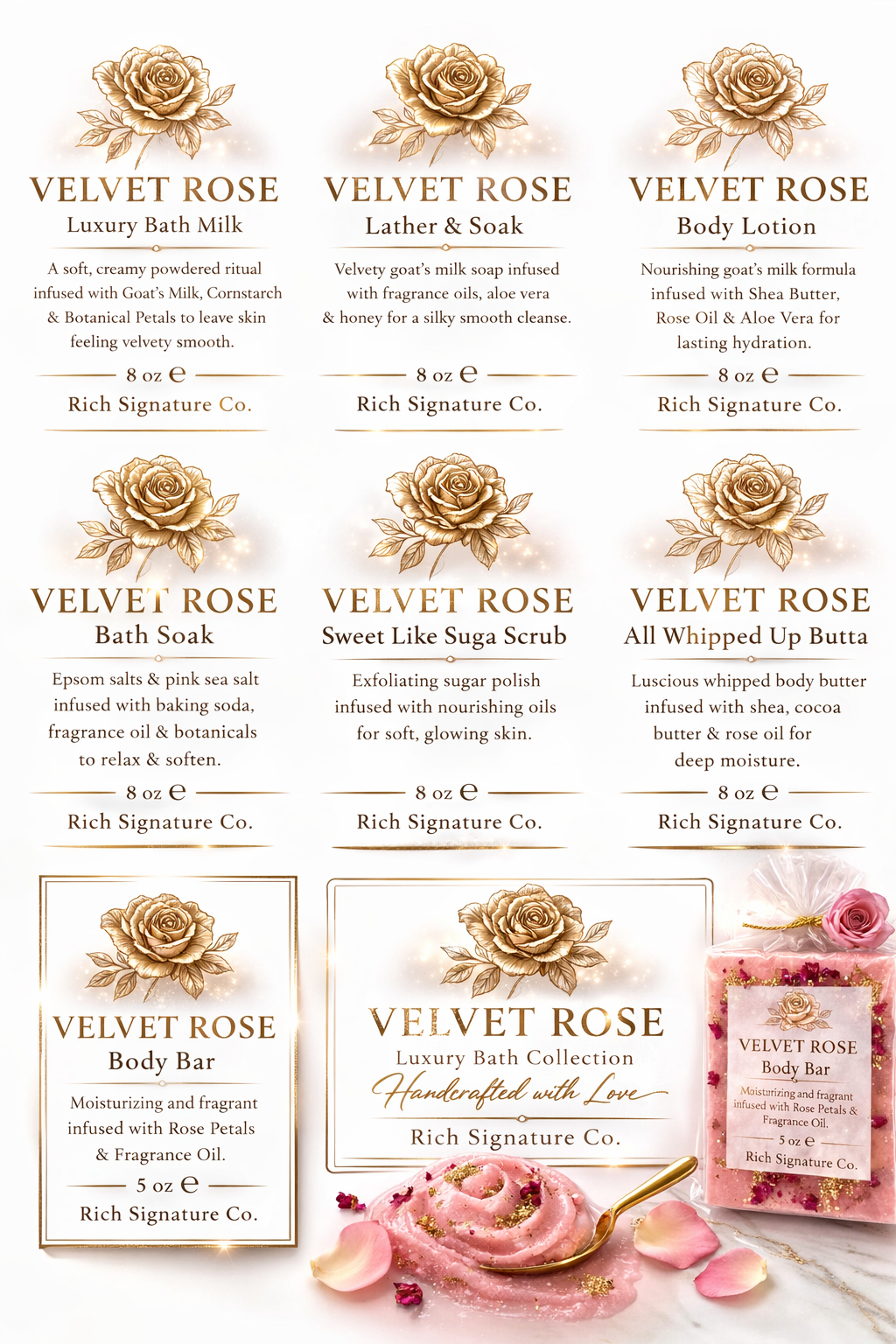 From soothing bath milks to decadent sugar scrubs and whipped body butters, every Rich Signature Co. product is crafted to transform ordinary moments into luxurious experiences.